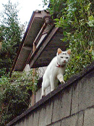 塀の上ではかなりはや足。